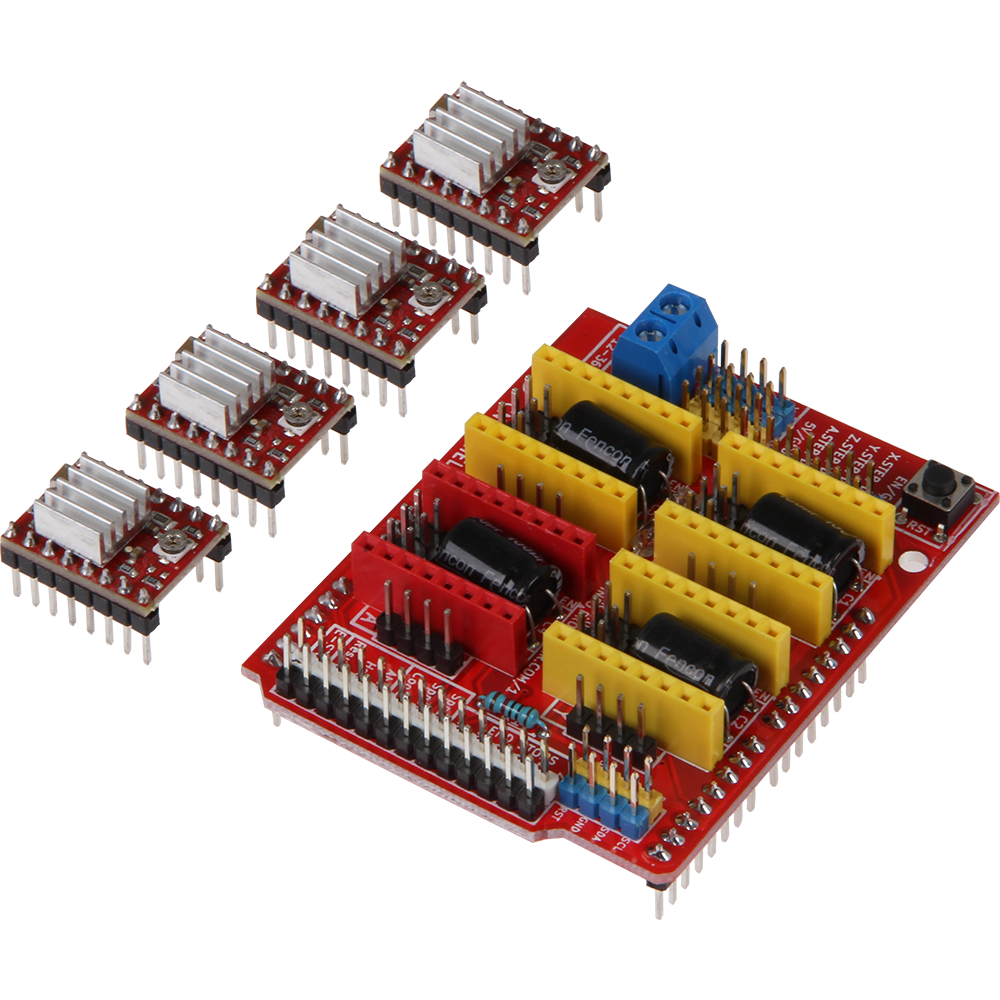 With this Controllerboard, which is designed for use with Arduino Uno or an Arduino Uno-compatible board you can install your costumized CNC milling machine. It can be operated from 12 to 36 Volt as required and can control up to 4 axes with the supplied A4988 motor drivers easily, as it is a 100% compatible to GRBL.