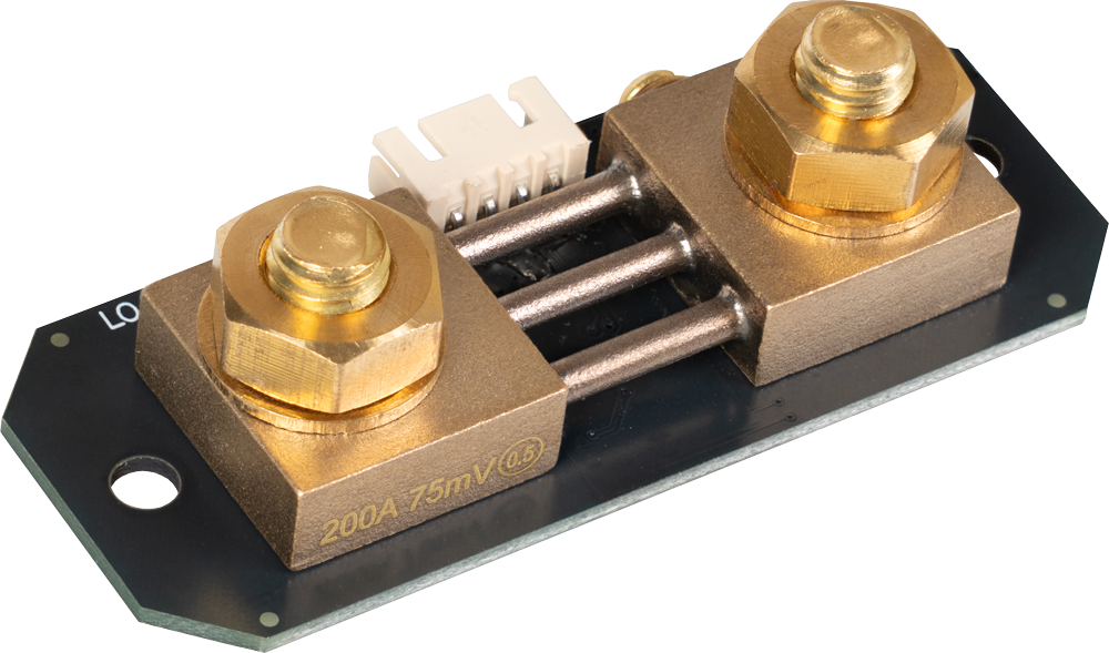 Main control panel, shunt resistor, shunt data cable (20 cm), relay control cable (20 cm), external temperature sensor (100 cm), terminal block, 2x 7mm standoff, 2x M4x25mm countersunk screw