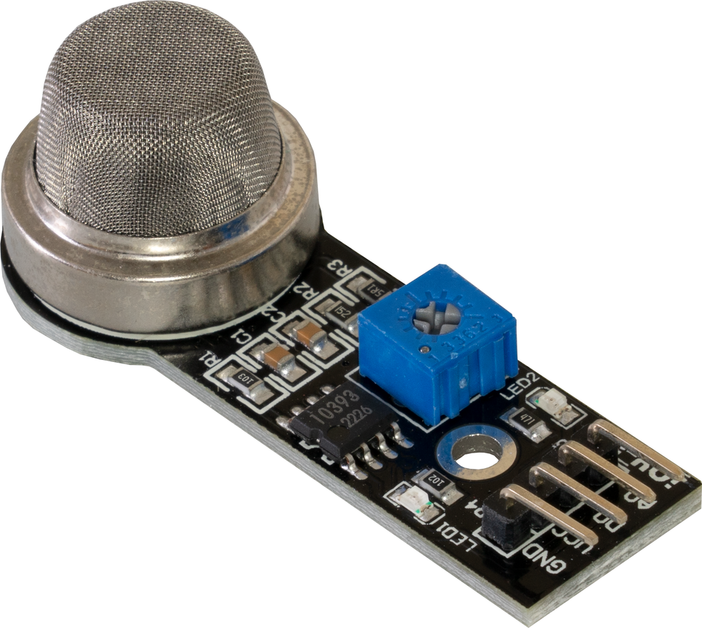 This analog gas sensor for LPG has a small heating part with an electronical chemical sensor. It is suitable for indoor usage. The sensor can output exact values only after warmup phase.